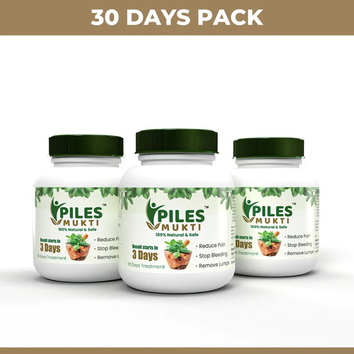 It helps relieve constipation, pain, burning sensation, itching, controls bleeding associated with piles, and helps get relief from complications like strangulation, anaemia, blood clot and infection caused due to piles. Piles Mukti starts working in 3 days and gives relief from piles, fissure and fistula in 30 days.